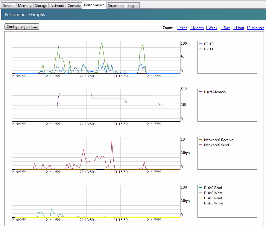 Je me suis donc lancé dans la création d’une simple VM linux dédiée à de la bureautique, mais avec le disque virtuel sur un filer plutôt que sur les disques locaux du serveur. Rien de bien gourmand donc, mais deux contraintes tout de même, des temps de réponses acceptables dans le lancement des logiciels, ainsi qu’un affichage relativement réactif (proche des temps de réponse d’une machine de bureautique standard).