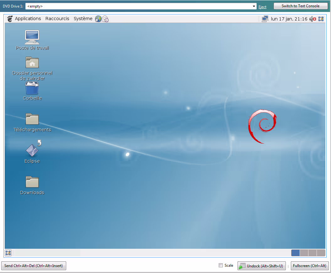 Une fois mon déport VNC configuré comme affichage par défaut, j’ai tout de même pu m’extasier devant mon Débian