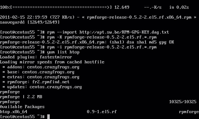 Une fois le programme installé, un reboot s’impose! Selon les gouts « shutdown -r now » ou « init 6 ». Une fois que c’est fait, il faut mettre son système à jour avec « yum upgrade », et pourquoi pas installer tous les produits et logiciels indispensable à tout votre parc? Pourquoi pas non plus ajouter des repos additionnels tant qu’on y est (cf cette page du wiki.centos.org (lien mort, remplacé par Internet Archive))?