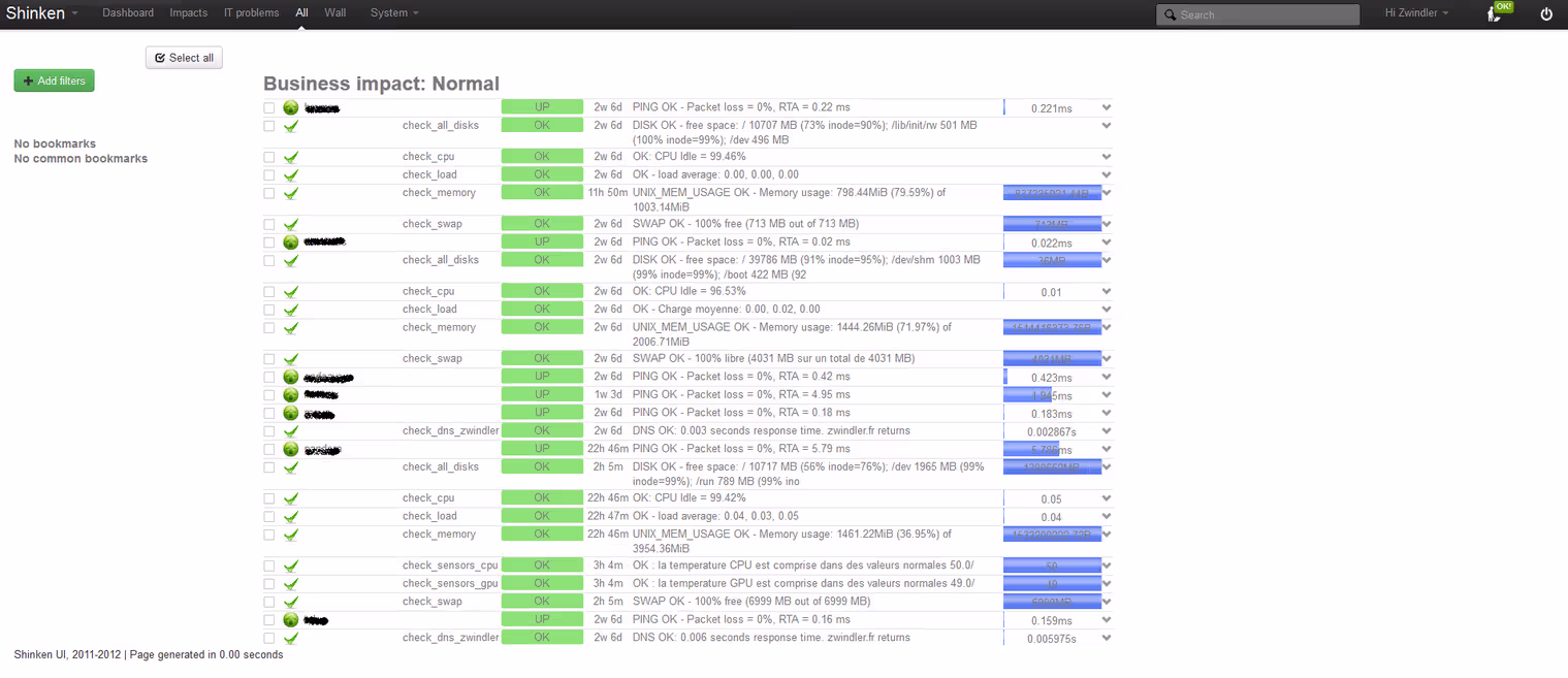 Le dashboard classique de l’outil de supervision de base. C’est la moins sexy des vues de Shinken mais je reste un peu vieux jeu