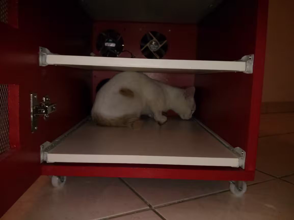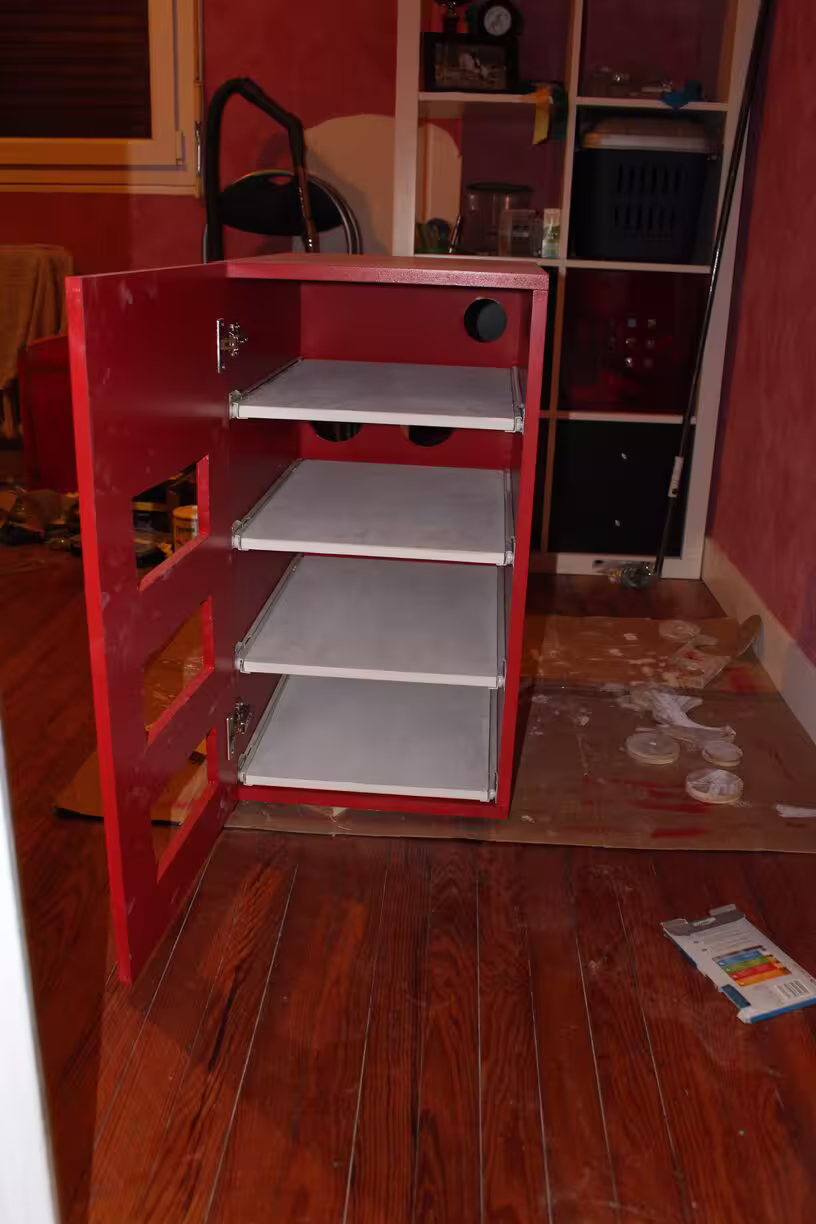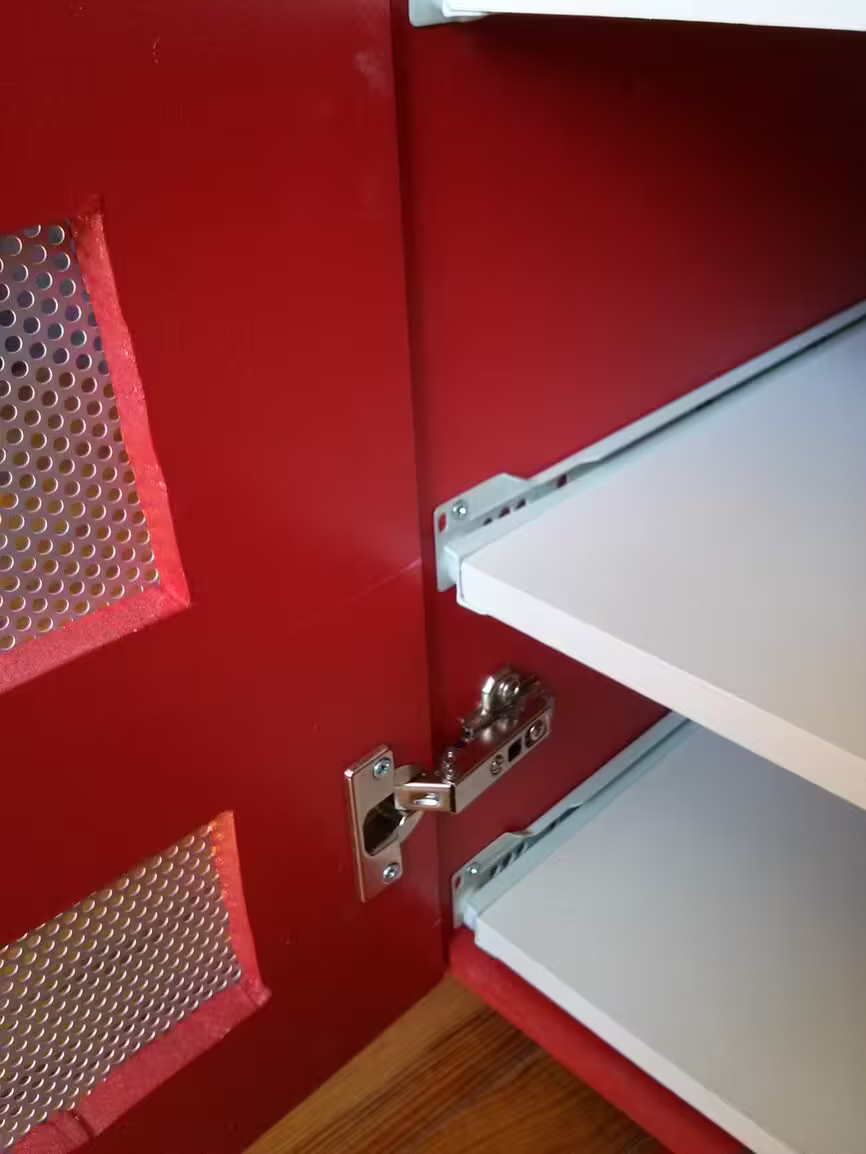 … problème de design : les tiroirs frottent sur la porte quand elle est ouverte à 110°. Je dois la laisser à 90° :-/