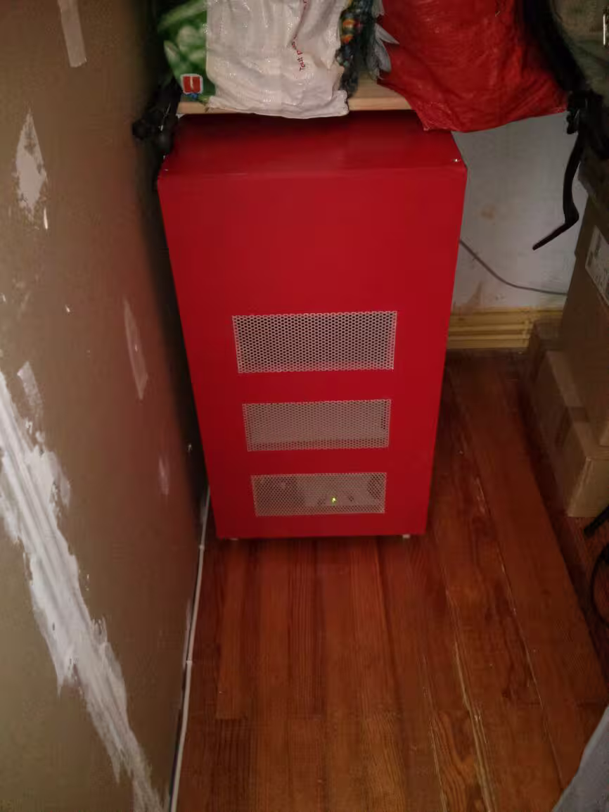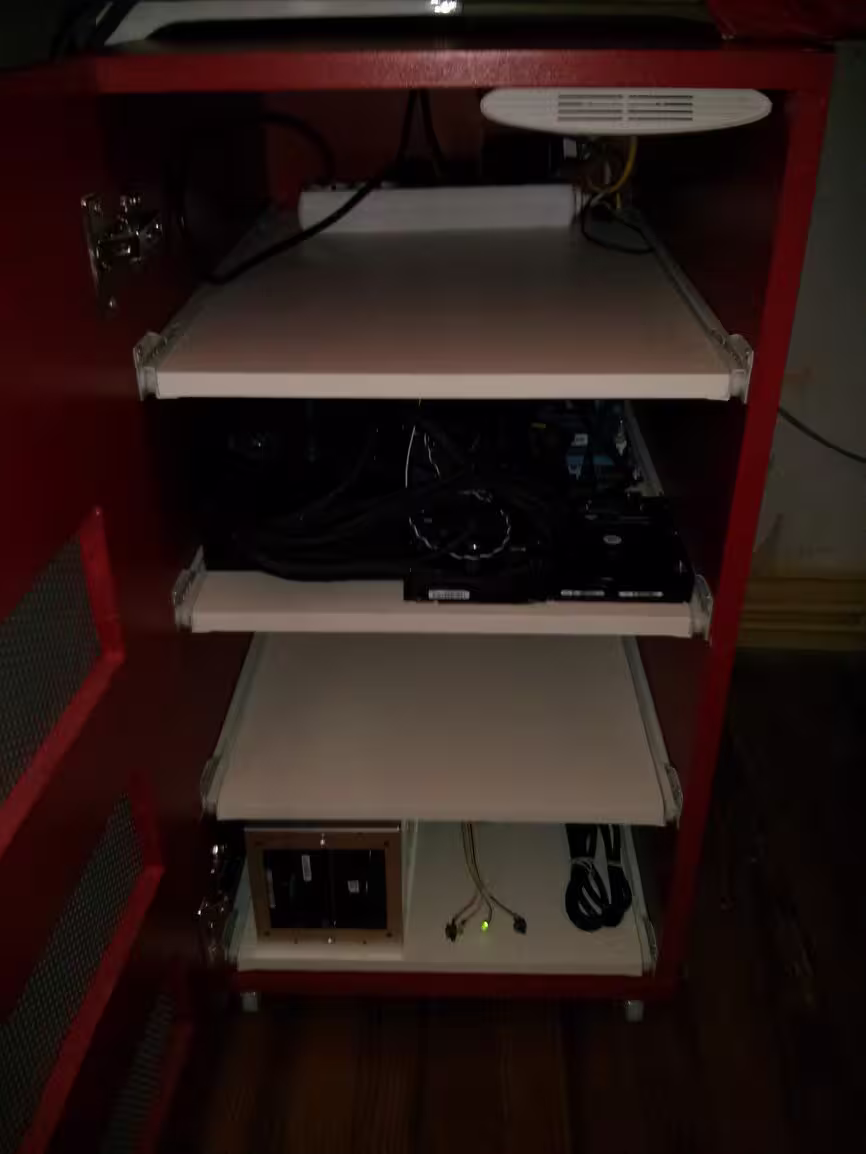 En mode flou, voici l’hyperviseur. Pour l’instant il est un peu à l’étroit mais il faut que je vais acheter une cage pour HDD comme pour le NAS, ça ira mieux. Une alim modulaire ne serait pas du luxe…