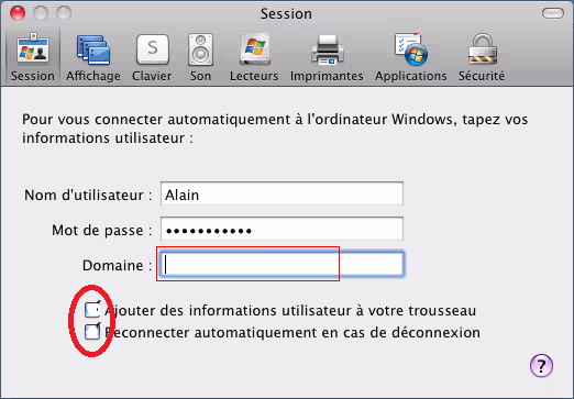Dans l’onglet Session, vider la case Domaine et décocher les cases