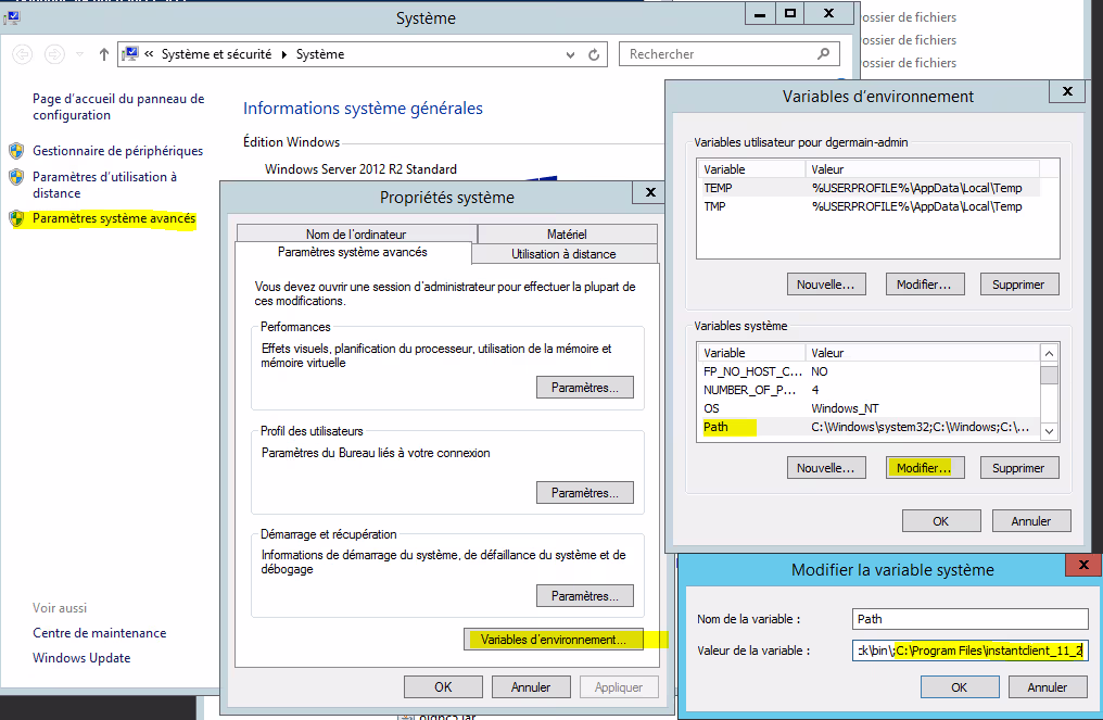 Pour finir, avant que le pilote soit totalement opérationnel, il faut aussi modifier la variable d’environnement globale de Windows « Path » pour y ajouter le chemin vers le pilote ODBC.