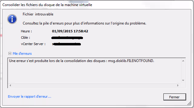 Une erreur s’est produite lors de la consolidation des disques : msg.disklib.FILENOTFOUND.