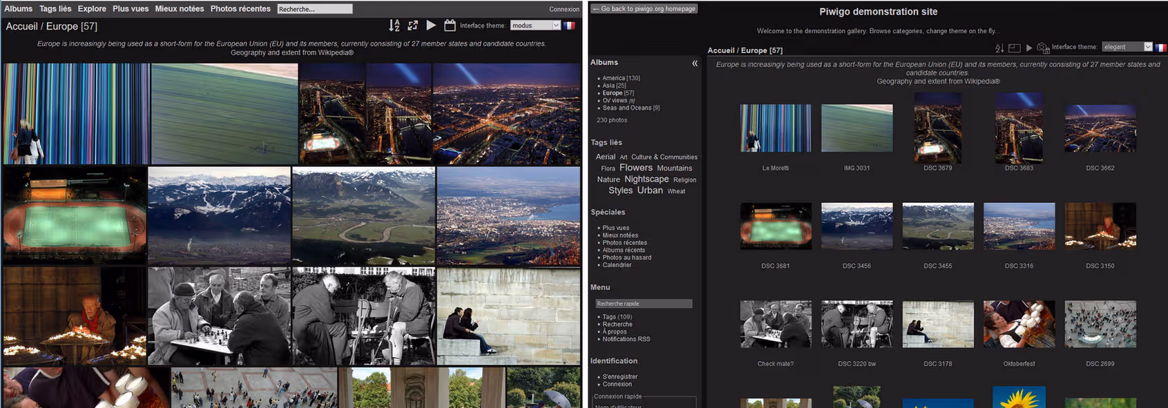 En fouillant dans les commentaires de l’article de Korben cités plus haut, je suis tombé sur un commentaire d’un des développeurs de Piwigo (Pierrick LE GALL), un autre projet, Français et libre, visant à fournir un serveur de galerie web.