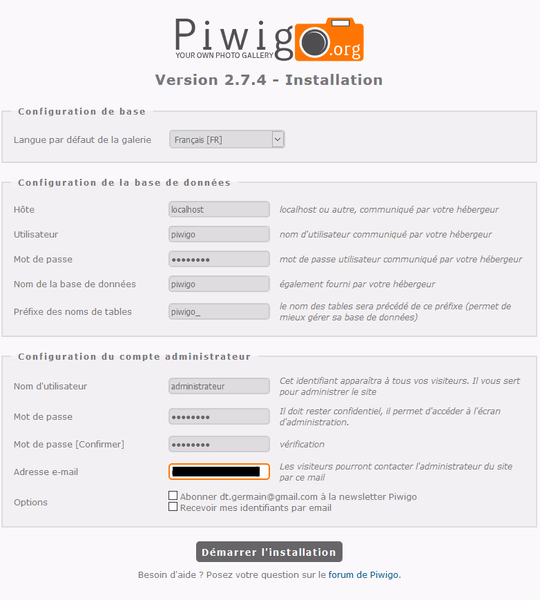 Si vous utilisez Piwigo sur un hébergement mutualisé, il est probable que la procédure sera plus complexe. Je vous conseille de lire la documentation officielle dans ce cas.
