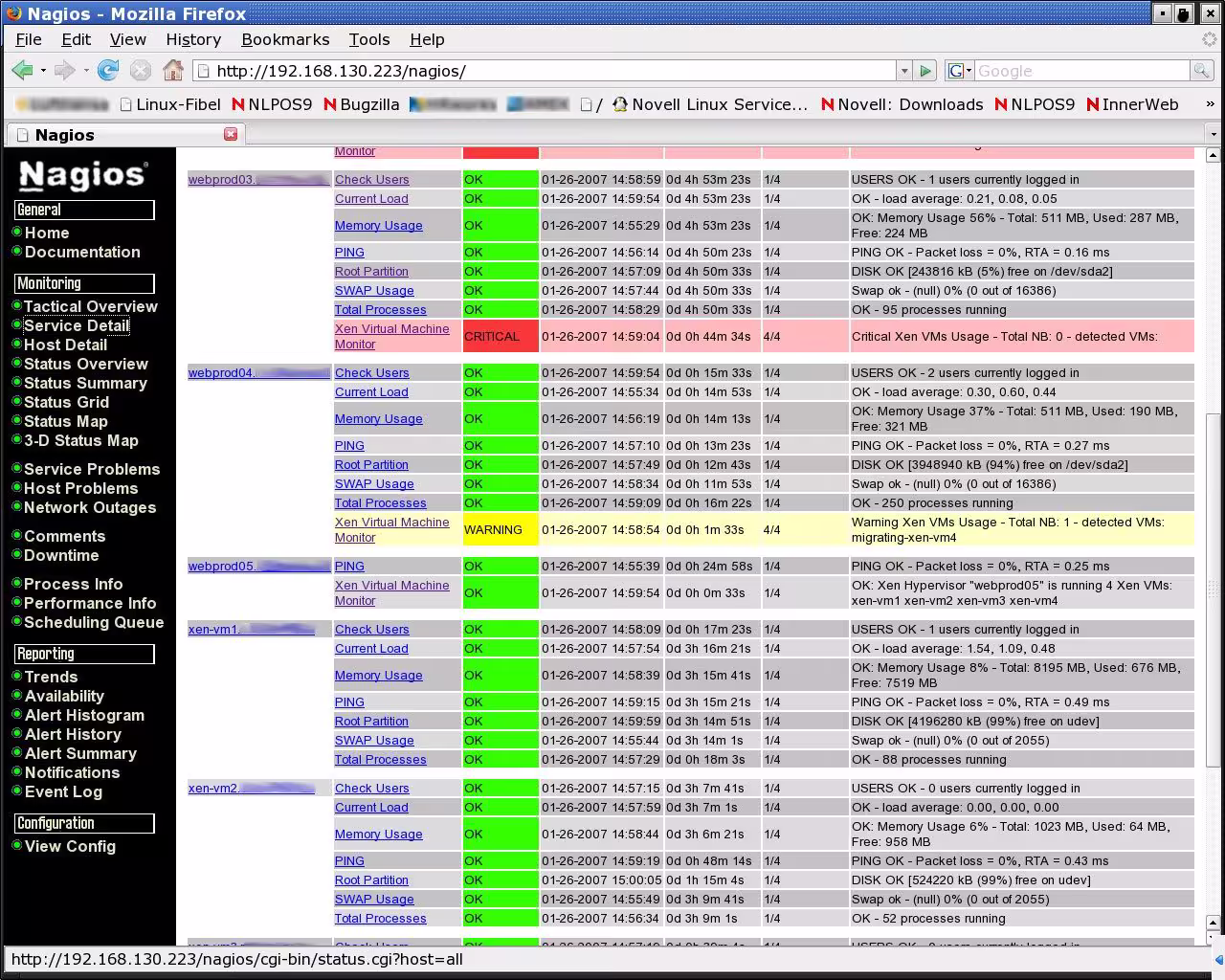 Nagios est une application monolithique écrite en C. L’interface graphique de Nagios est présentée par un serveur web apache à l’aide de scripts CGI. Je ne sais pas si le fait que l’interface de Nagios soit si … « austère » (qui à dit « moche » ?) est une limitation liée aux choix technologique ou un réel choix ergonomique.