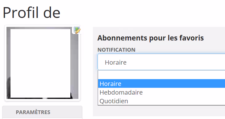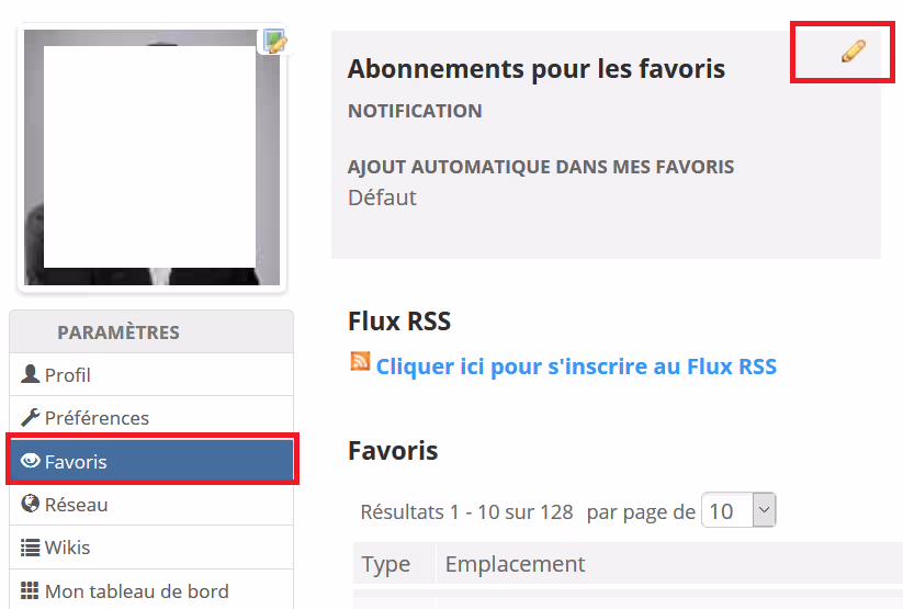 On arrive alors sur les préférences de l’utilisateur. Cliquer sur le menu « Favoris » puis sur le crayon pour éditer les préférences actuelles.