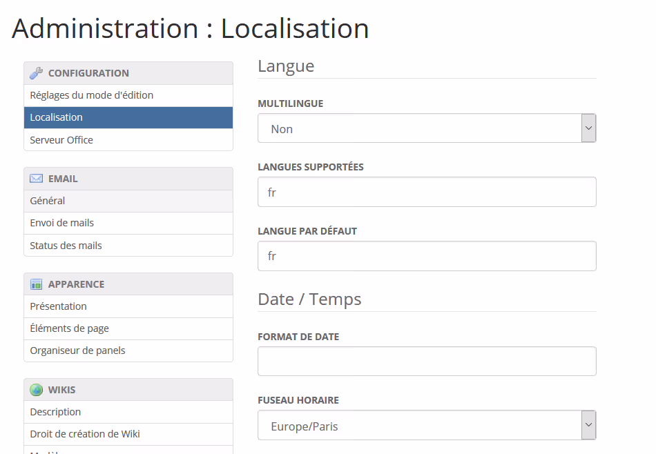 Changer la langue du XWiki