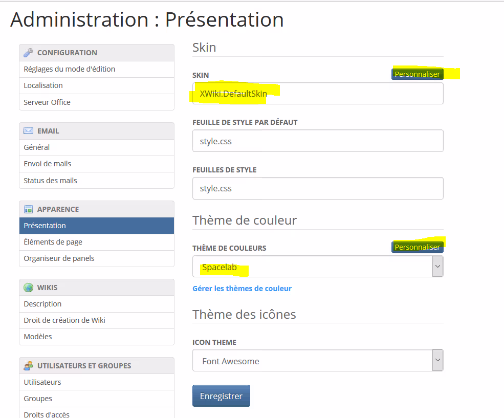 L’apparence du XWiki peut être changé dans le menu