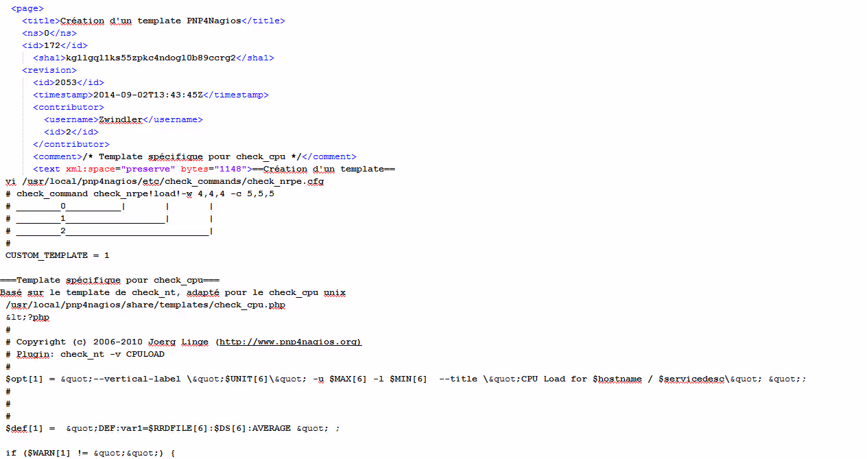 Si vous êtes curieux, voilà à quoi ressemble en vrai une de vos pages mediawiki (en ouvrant le XML) :