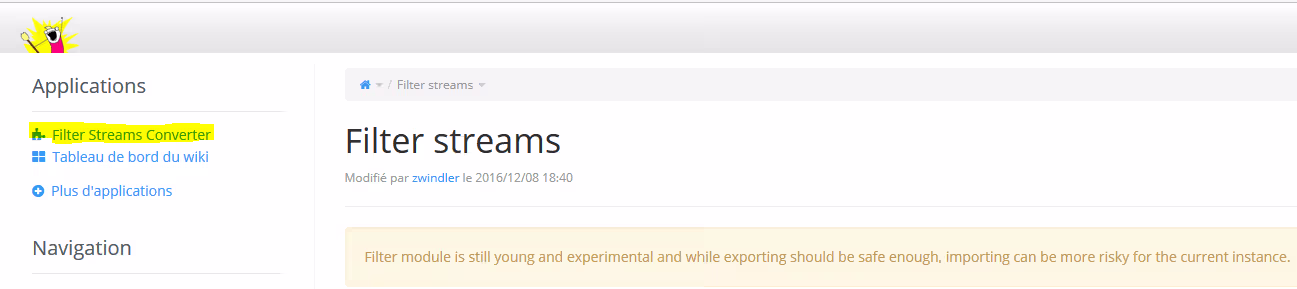 A noter, l’extension Filter Streams Converter Application semble être intégrée par défaut au cœur de XWiki. Et comme c’est un dépendance de l’extension MediaWiki XML, je n’ai initialement pas pu l’installer car l’application Filter Streams Converter Application était en version 8.4.1 alors que la 8.4.2 était nécessaire !