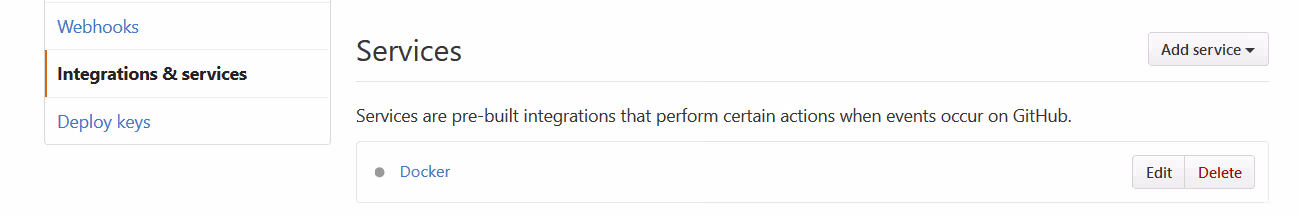Au delà de simplement lier les deux comptes, Dockerhub paramètre vos dépôts git et y ajoute des services (webhooks préconfigurés) permettant de prévenir automatiquement Dockerhub de la présence de code mise à jour sur GitHub.