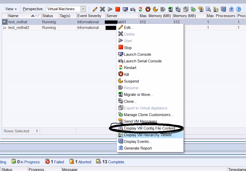 Une fois validé, on peut vérifier que cette configuration a effectivement été modifiée en affichant ce fameux VM Config File que je ne sais pas où trouver :