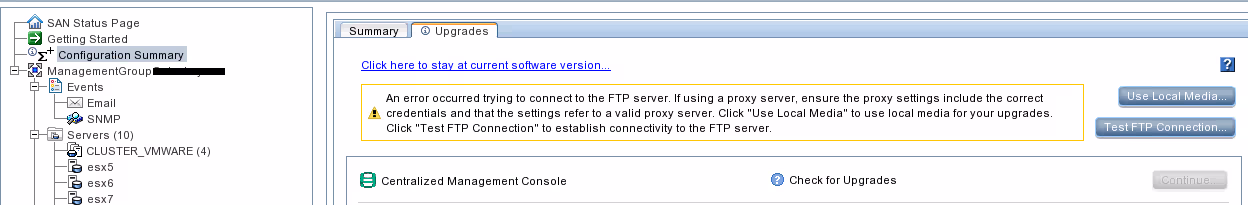 Aujourd’hui, nous avons un cluster HP VSA qui nécessite un petit upgrade avec l’ajout de 2 nœuds supplémentaires. Histoire de faire les choses bien, j’ai voulu m’assurer que les nœuds étaient correctement à jour et quelle n’a pas été ma surprise quand j’ai découvert que la console n’arrivait même plus à contacter le serveur contenant les mises à jour !