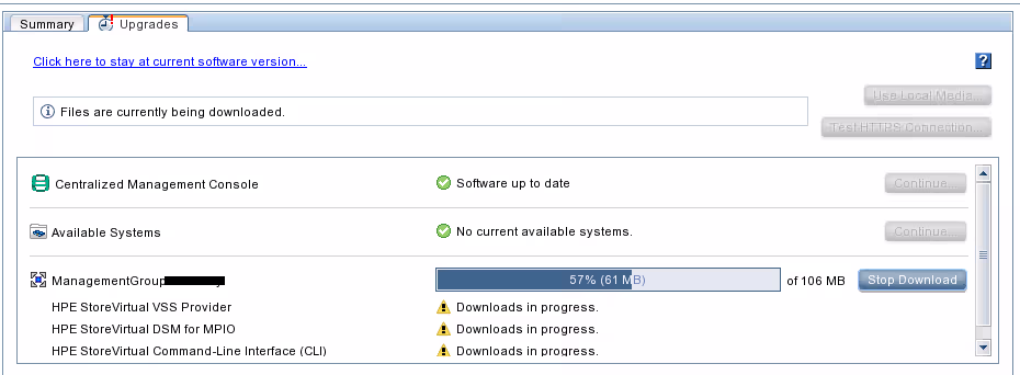 Pour simplifier le processus de mise à jour des nœuds StoreVirtual, on utilise la console centralisée CMC -qui peut être installée sur un Linux ou un Windows-. Cette console a l’avantage de servir de pivot pour télécharger les patchs depuis un seul et même endroit (dans mon cas, un serveur Windows).
