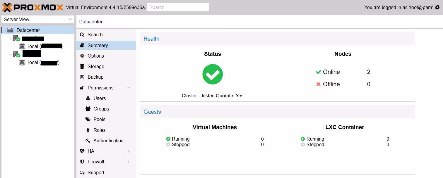On a maintenant un cluster de 2 machines Proxmox. Pour autant, ce n’est pas idéal et ça ne suffira pas pour passer en production, notamment en cas de coupure réseau entre les deux machines (split brain). On va vite vouloir en rajouter au moins une, sinon plus.