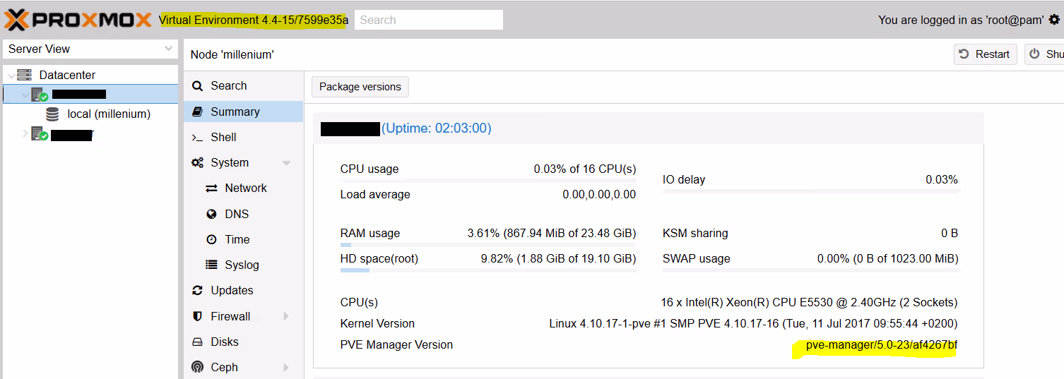 A noter : chose qui n’était pas possible entre la version 3 et la version 4 (car les deux composants n’utilisaient pas le même logiciel pour le clustering), il est possible de faire un cluster ProxMox mixant version 4 et version 5 comme le montre cette capture d’écran :