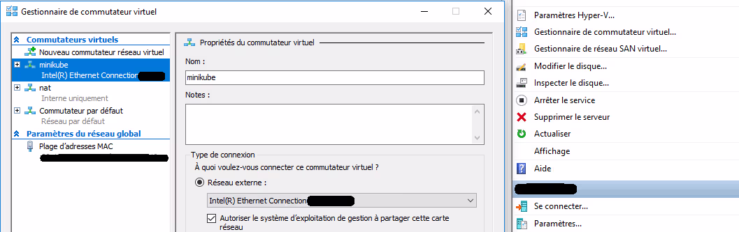 Vérifiez donc dans les paramètres d’Hyper-V que vous ne vous êtes pas trompé d’adaptateur réseau lors de la configuration du réseau virtuel (cf l’article précédent) !