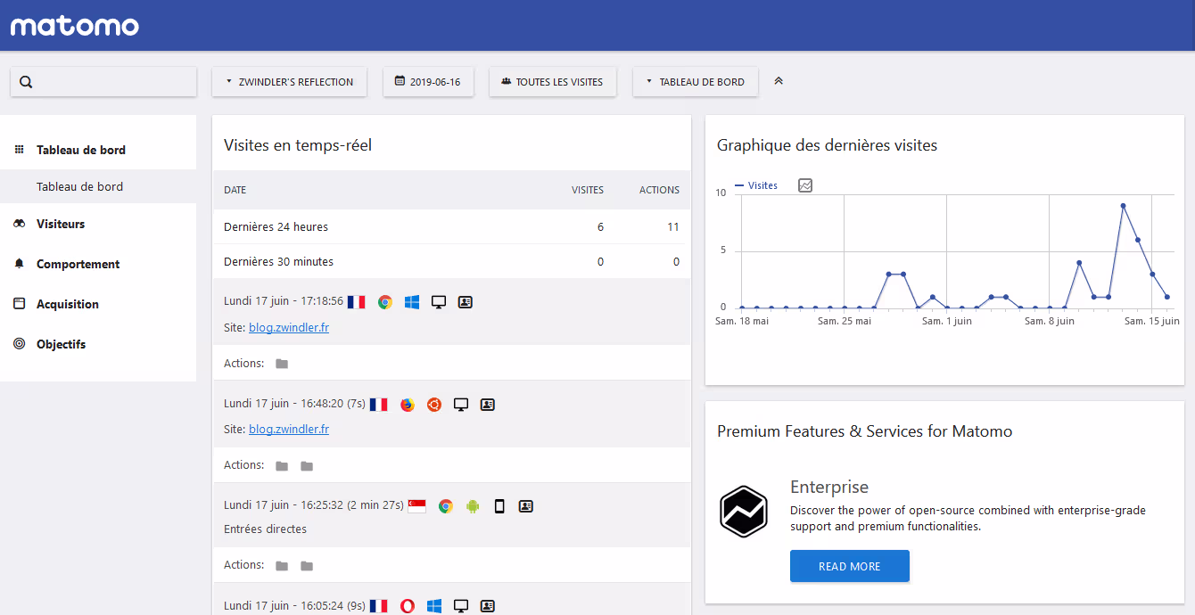 Je vais partir du principe que si vous auto-hébergez comme moi, vous n’avez pas envie de faciliter la tâche à Google. Et c’est donc pour cela que je vous propose une autre option : Matomo.