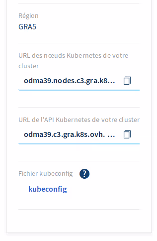 D’ailleurs, comment on s’y connecte ? Pas de souci de ce côté, OVH vous simplifie la vie en vous proposant de télécharger directement votre fichier kubeconfig préconfiguré, prêt à utiliser.