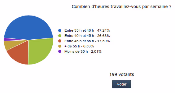 - une de fin 2011 sur developper.com qui montrait que la majorité des salariés de l’IT bossaient plus que 40h/semaine, avec un taux de “temps partiel” extrêmement faible (2%)