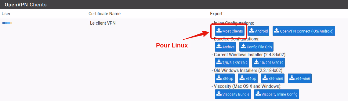Un problème avec le VPN ? Les logs sont dans Status / System Logs, puis OpenVPN.
