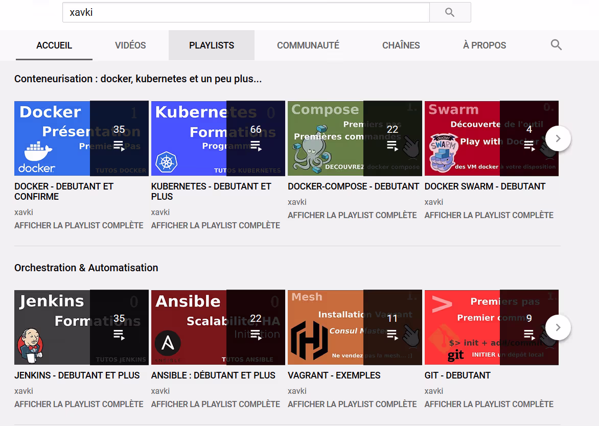 La chaine xavki contient plusieurs centaines de vidéos assez courtes (10 minutes environ) pour traiter de chaque sujet par petits bouts, de manière incrémentale. Ça ne se limite pas à Kubernetes, Xavier a également fait de nombreuses vidéos sur la CI/CD, la sécurité, Ansible, etc.