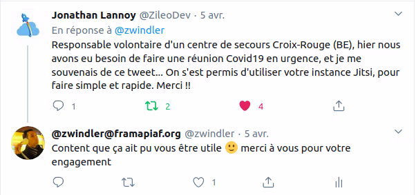 C’est super cool, j’ai mis à dispo une instance jitsi qui a priori a été utile à plusieurs personnes.