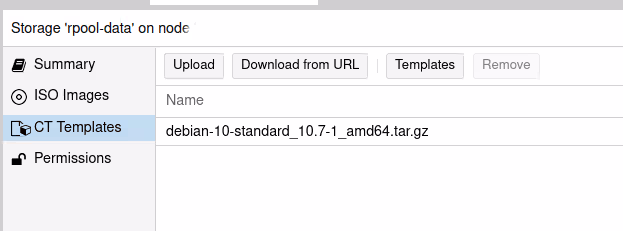 pveam download rpool-data debian-10-standard_10.7-1_amd64.tar.gz