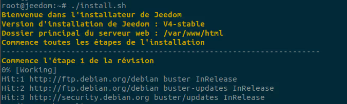 Puis on récupère le script d’installation de la mort de Jeedom et on l’exécute les yeux fermés 🙈 (ne faites pas ça en prod). J’ai un peu de mal à croire que des gens sérieux osent proposer encore ce genre de méthode d’installation mais bon…