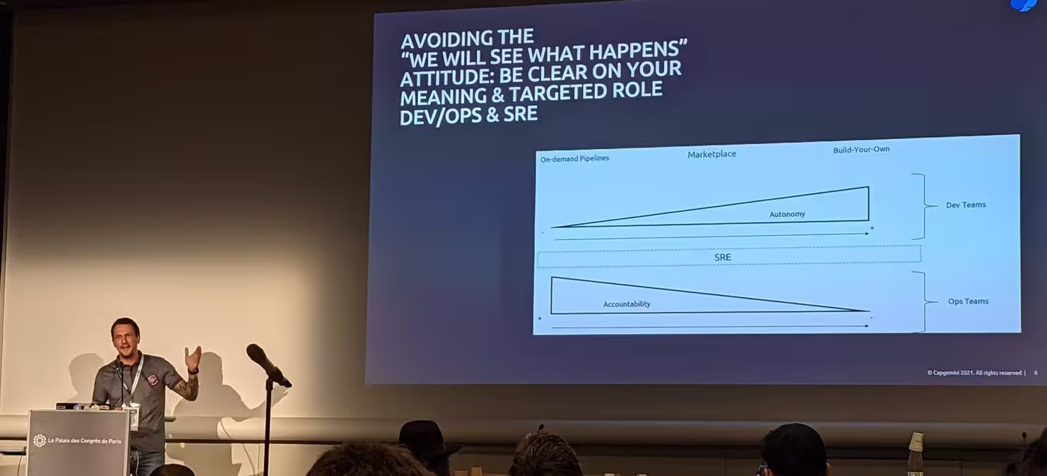 Sans jamais le citer, je pense qu’il voulait parler des principes de devops mais je n’ai pas insisté ;-).