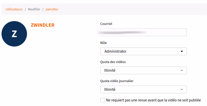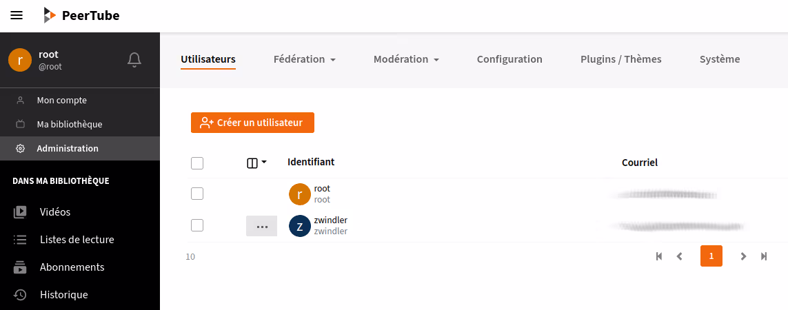 Une fois connecté avec l’utilisateur (il n’est pas recommandé d’utiliser l’utilisateur d’admin pour publier des vidéos), on se connecte avec et on peut commencer à créer des “chaînes”, configurer des valeurs par défaut pour nos vidéos, etc.