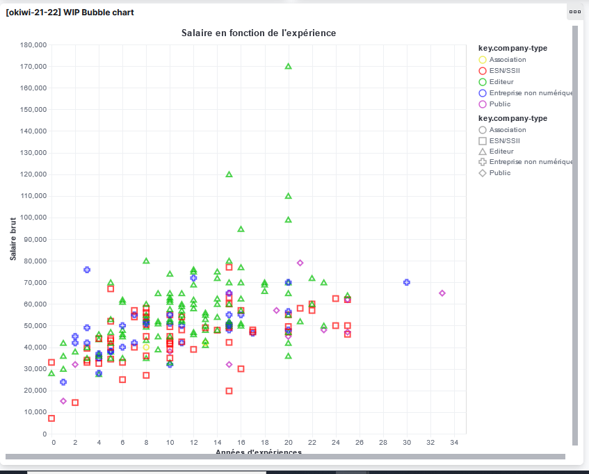 On n’est plus très loin de ce que Frédéric m’a proposé en début d’aticle. Reste maintenant à discriminer visuellement les données en fonction du type de société dans laquelle le salarié est embauché.