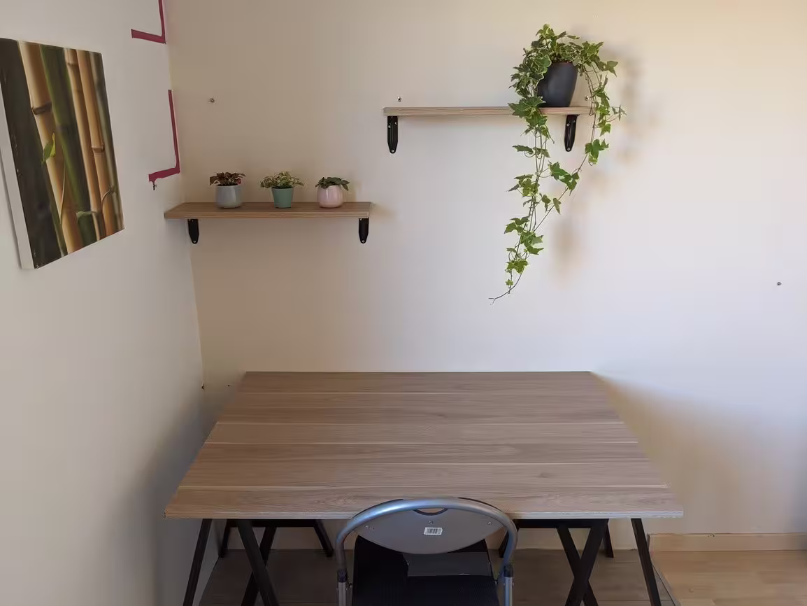 J’ai récupérer un vieil écran 15 pouces VGA, une planche, deux tréteaux, quelques adaptateurs (Ethernet/USB et VGA/USB) et hop : bureau secondaire !