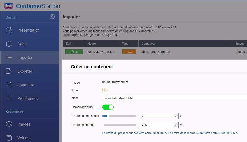 Pire encore, la procédure que je donne ici semble être écrasée à chaque mise à jour de l’application Container Station. Mais, ça fonctionne…