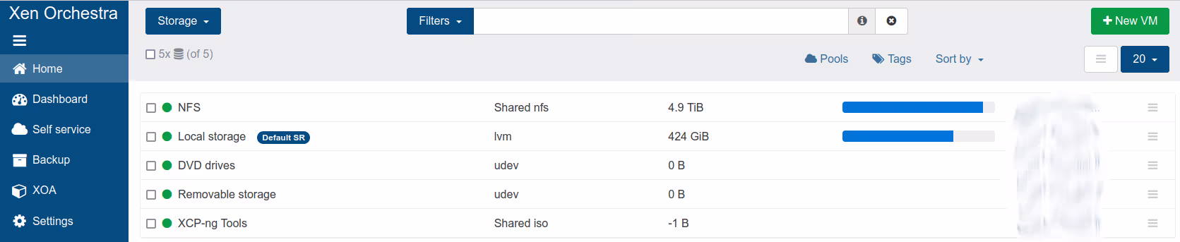 - de l’autre, un serveur sous XCP-NG, dans le même LAN, gérée par XenOrchestra (l’équivalent du vCenter de VMware, pour ceux à qui ça parle)