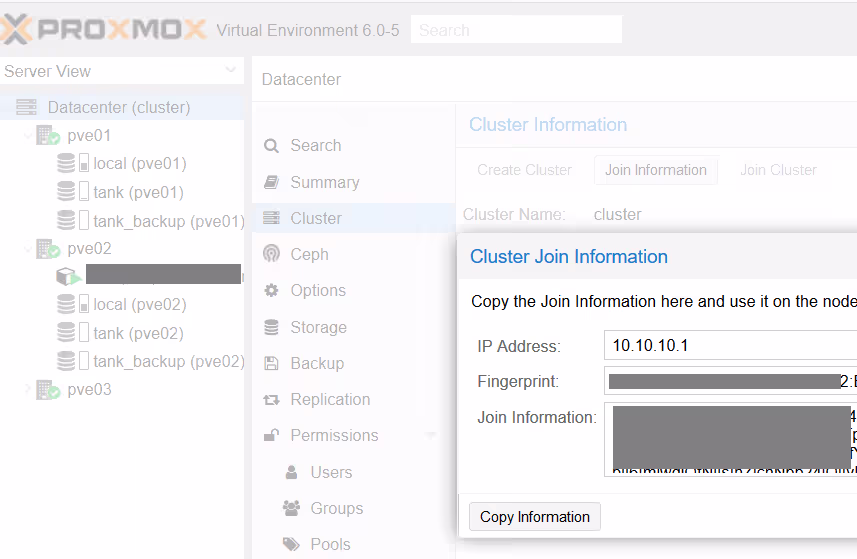 Tout est gĂ©rĂ© par un cluster corosync. L’ajout des nodes se fait via l’interface graphique en quelques clics (ou via ligne de commande si vous ĂȘtes un foufou comme moi).