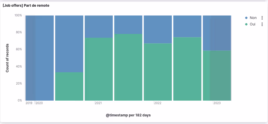Je le disais plus haut, la plupart des offres que j’ai reçu cette année sont pour des startups, scaleups, licornes et avec des présences souvent européennes. Il n’est donc pas très étonnant que beaucoup d’entre elles soient plutôt favorables au quasi full remote ou full remote.