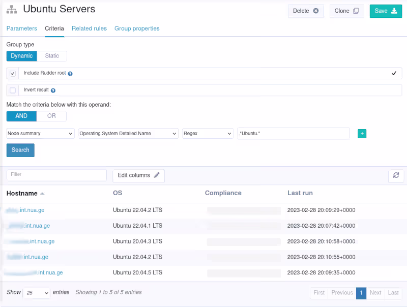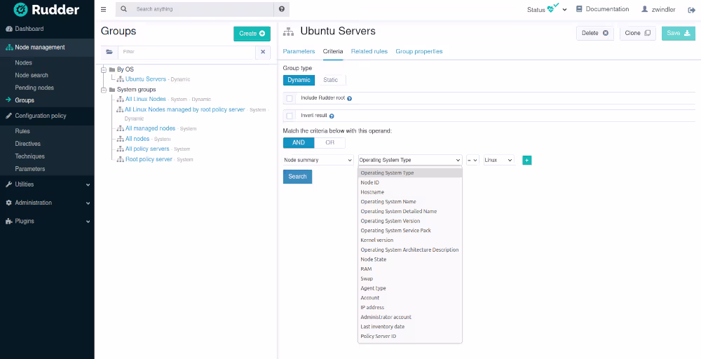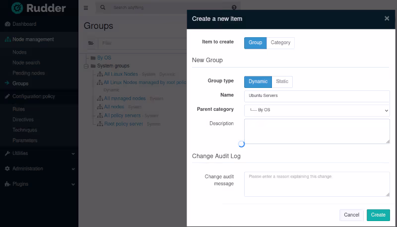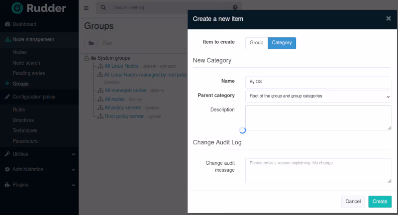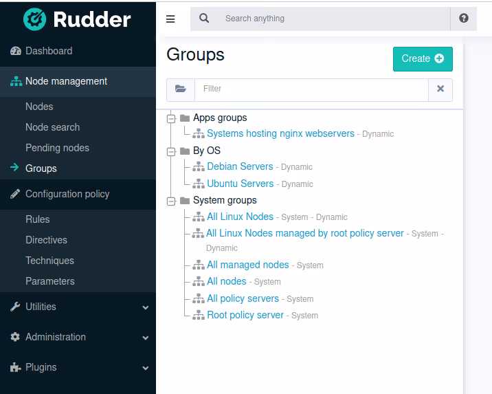 On retrouve ça dans l’interface de Rudder dans la partie Node management / Groups.