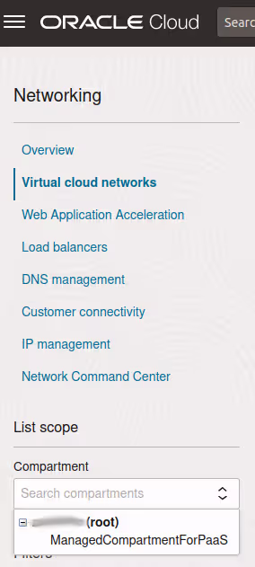 Une fois connecté à la console, on peut commencer à faire joujou. La première chose qu’on va devoir faire est de se placer dans un “Compartment”. Je n’ai pas creusé en détail cette fonctionnalité, pour faire simple on va se placer à la racine de notre “tenant”.
