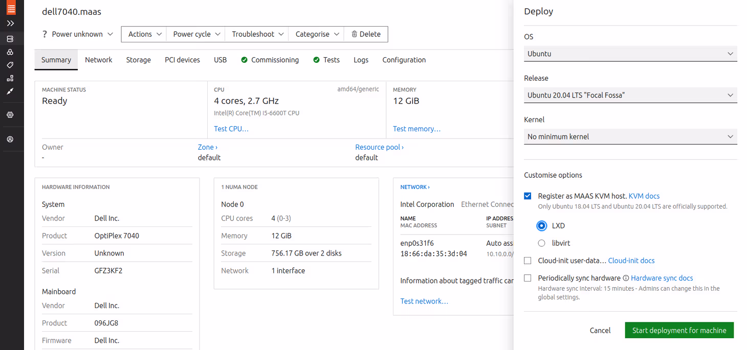 - Premiers pas avec MAAS - Metal as a Service, l’outil de déploiement de machines baremetal de Canonical