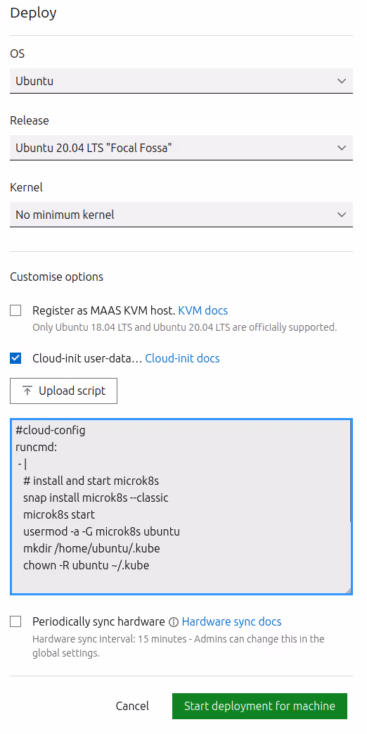Pour faire simple et parce que c’est devenu un des standards du marché, je vais tester l’utilisation de cloud-init avec MAAS pour customiser mon OS.