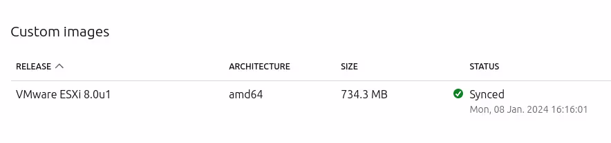 maas admin boot-resources create name='esxi/8.0u1' title='VMware ESXi 8.0u1' architecture='amd64/generic' filetype='ddgz' content@=vmware-esxi.dd.gz
