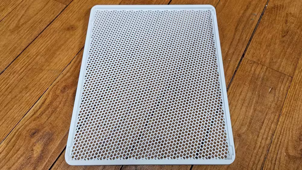 Même si j’ai imprimé le prototype en PLA je vous conseille plutôt d’utiliser du PETG, qui résiste mieux à la chaleur que le PLA. Cependant, ces machines restent plutôt froides en idle et le plancher en nid d’abeille permet d’améliorer la ventilation (et de réduire la consommation de matière). Peut-être que ça marche aussi.