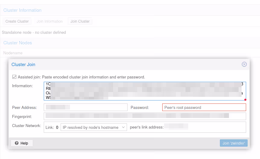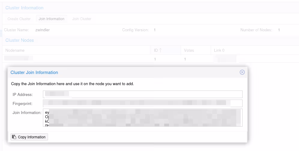 Une popup s’ouvre avec plusieurs informations à copier-coller qui nous seront demandées dans le menu de l’autre serveur, celui qui va rejoindre le cluster :