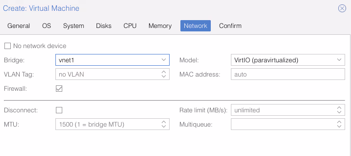 Et si maintenant, je recrée une autre machine virtuelle, mais que cette fois-ci au lieu de vmbr0, je choisis vnet1, je n’ai pas besoin de saisir l’adresse IP (puisque j’ai le SDN qui sert le DHCP) et elle a accès à Internet sans configuration supplémentaire.