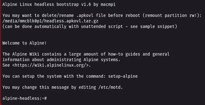 wget https://github.com/macmpi/alpine-linux-headless-bootstrap/raw/469ee440e7d394cca0976c78f357e7a0e1c82cc4/headless.apkovl.tar.gz