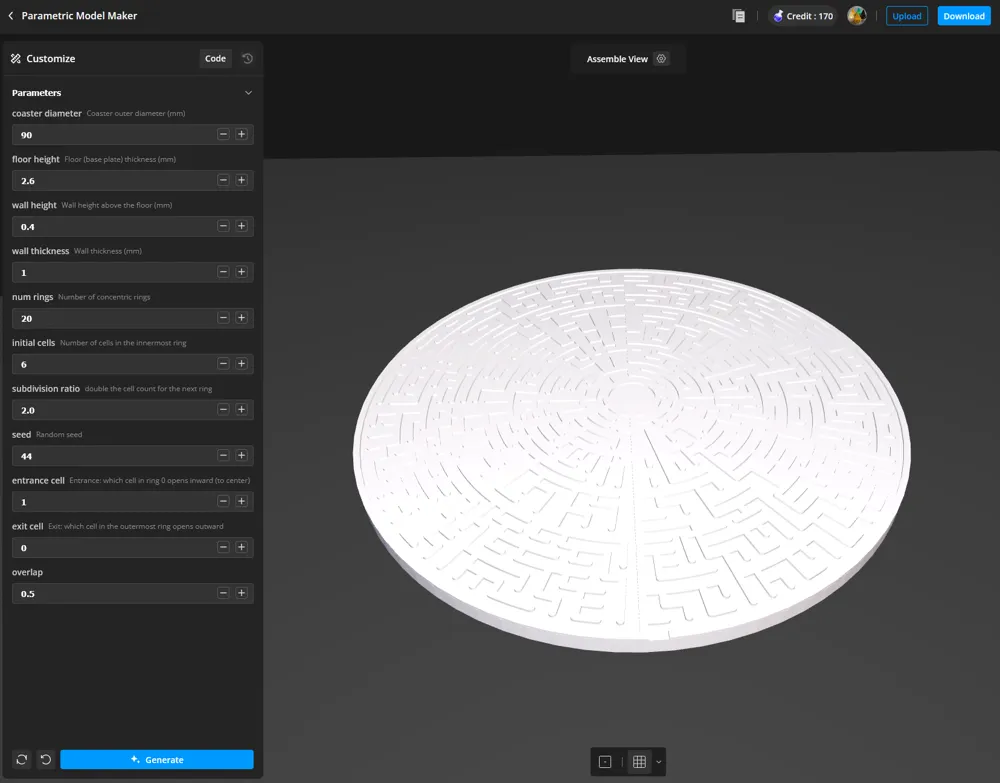 Parametric Circular Maze Coaster : un sous-verre qui se résout